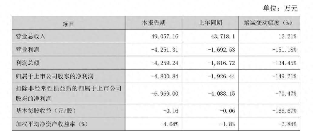 3月18日晚间,锐奇股份(300126)发布的业绩快报显示,该公司2025年度实现营业总收入4.91亿元,同比增加12.21%;归属于上市公司股东的净利润同比减少149.21%至-4800.84万元,创下公司2010年上市以来新低;扣非净利润-6969万元,同比减少70.47%。
