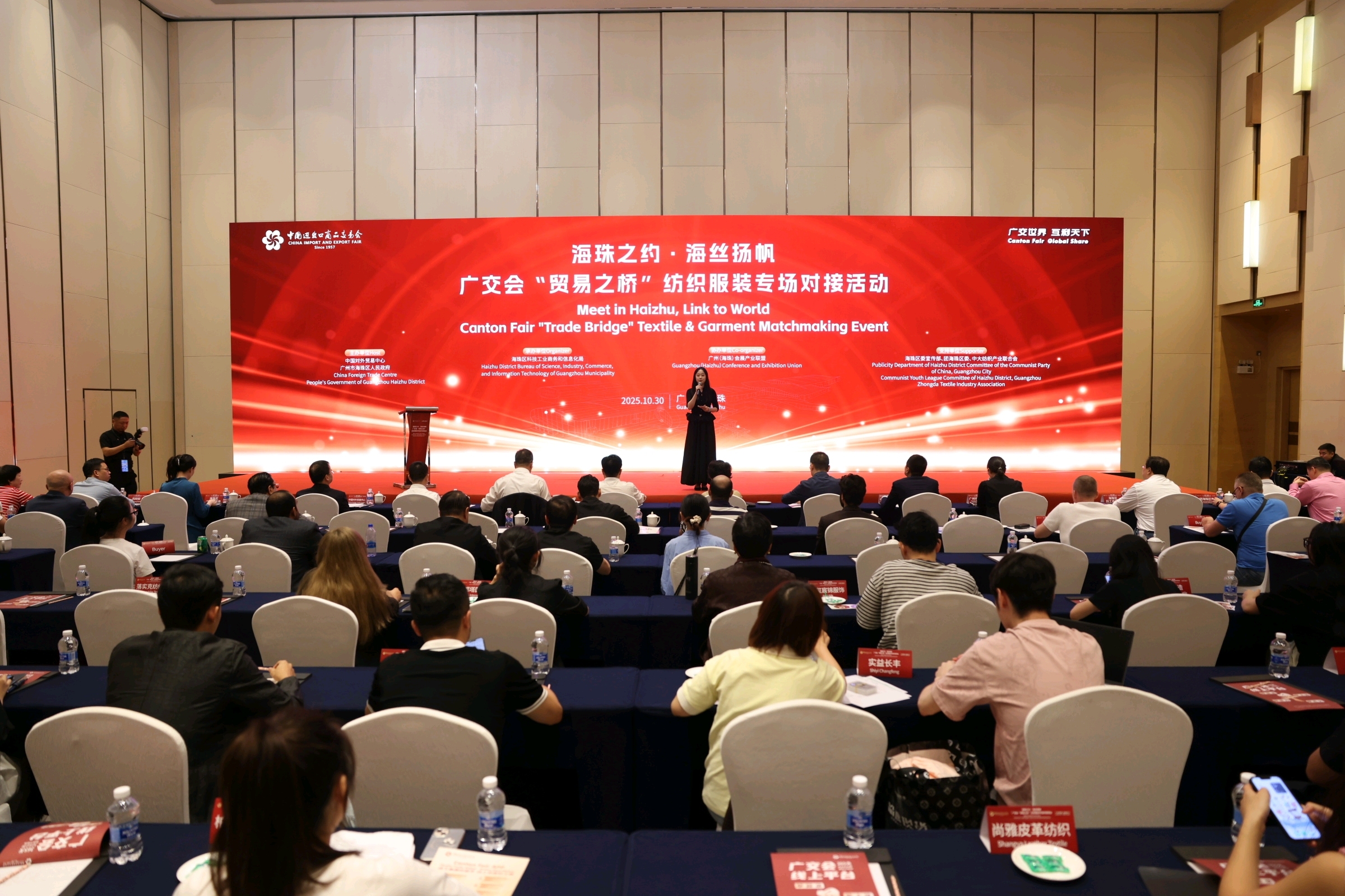 这次“贸易之桥”广交会供需对接活动是中国对外贸易中心与海珠区人民政府的第二次合作。双方共同举办“海珠之约·海丝扬帆”广交会“贸易之桥”纺织服装专场供采对接活动,既是对广交会“联通国内国际双循环”使命的延伸,更是海珠深耕纺织服装产业、服务全球经贸合作的务实之举。