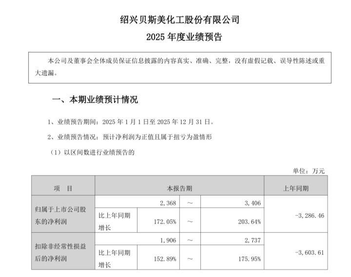 上证报中国证券网讯(记者操子怡)1月15日晚,贝斯美发布业绩预告,预计2025年归母净利润为2368万元至3406万元,上年同期亏损3286.46万元;扣非归母净利润预计为1906万元至2737万元,上年同期亏损3603.61万元。