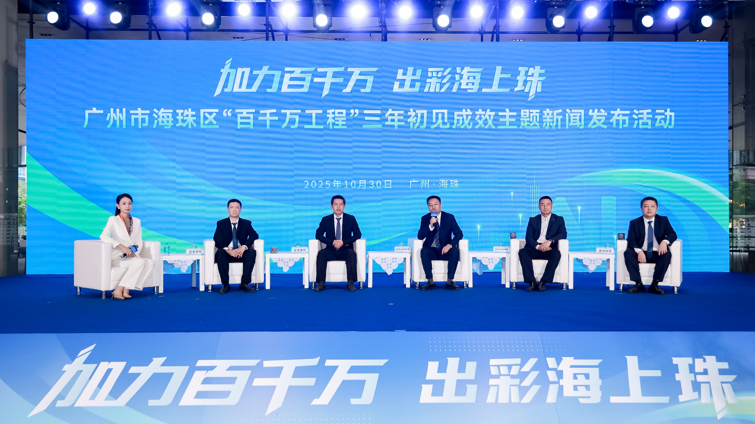10月30日,“加力百千万 出彩海上珠”广州市海珠区“百千万工程”三年初见成效主题新闻发布活动在琶洲举办。活动上,海珠区多个部门负责人全方位介绍了海珠区实施“百千万工程”的亮点。