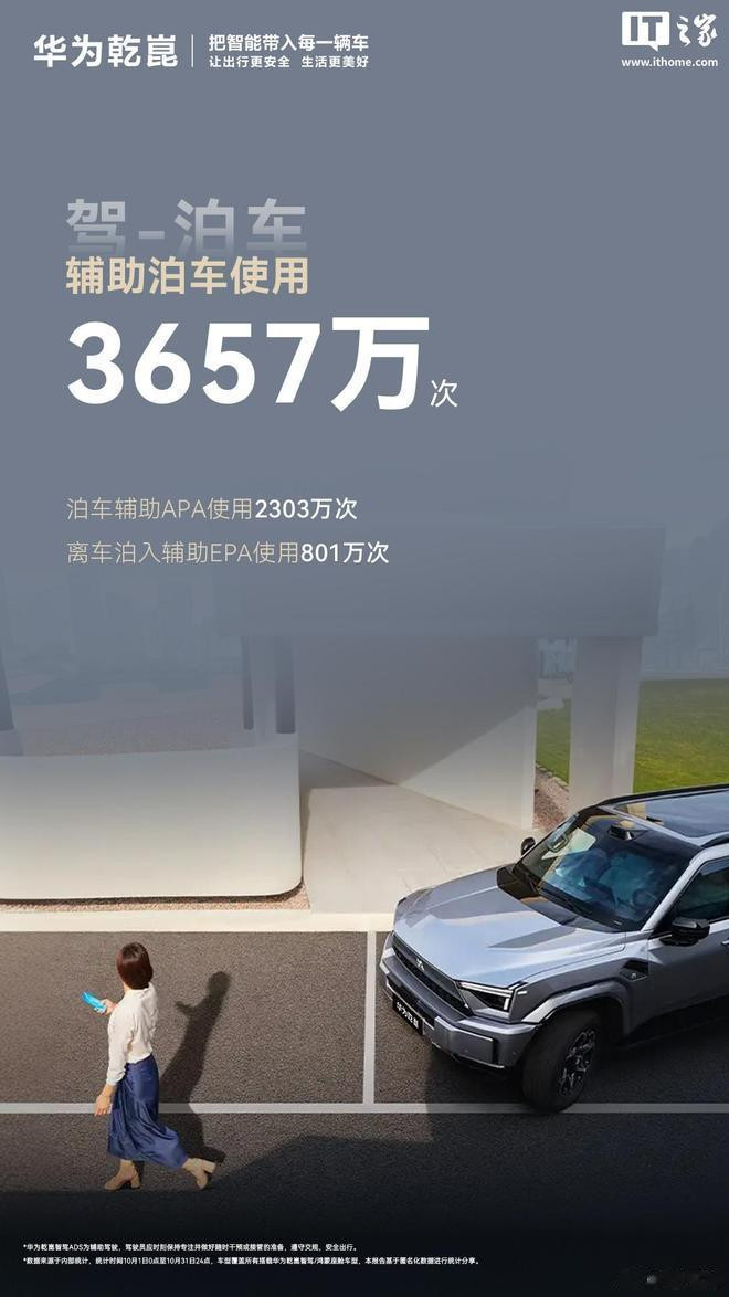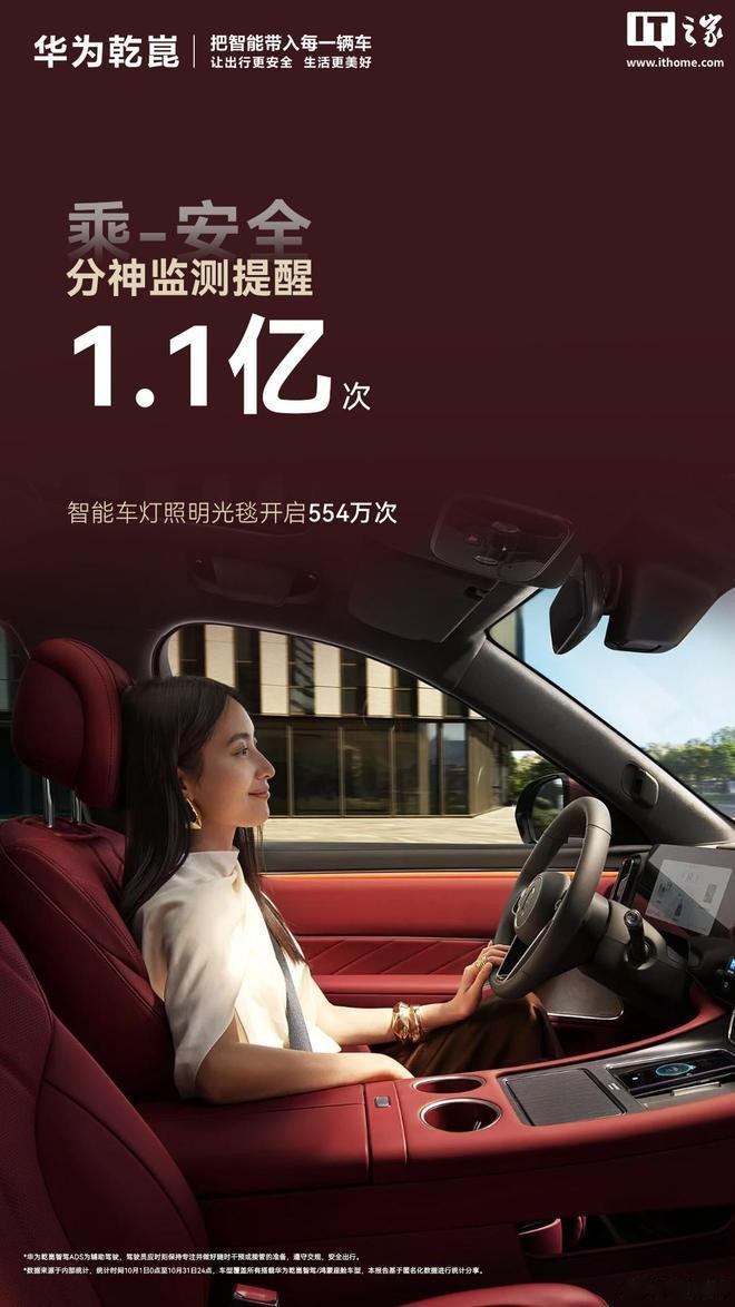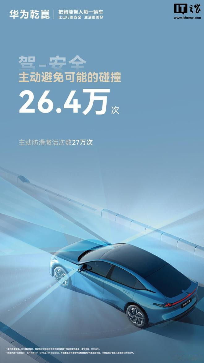 从靳玉志分享的海报来看,华为乾崑辅助驾驶系统在10月主动避免可能的碰撞26.4万次、分神监测提醒1.1亿次、泊车辅助使用3657万次。
