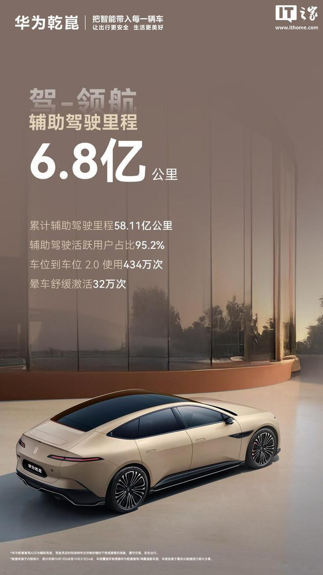 IT之家11月4日消息,华为智能汽车解决方案BUCEO靳玉志今日分享了华为乾崑用户的10月出行报告。他宣布,华为乾崑辅助驾驶里程新增6.81亿公里,相当于绕赤道1.7万圈。同时语音助手被唤醒了3.44亿次。